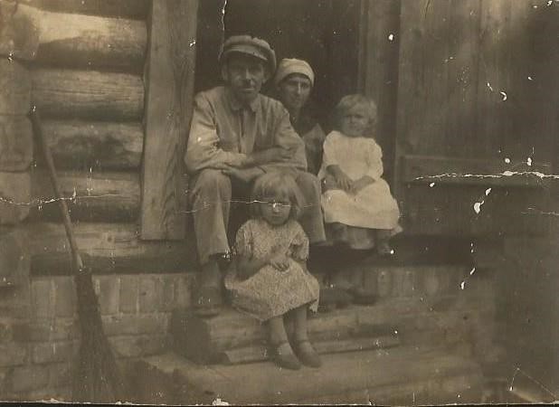 Karol i Rozalia Seifert z córkami Teresą i Agnieszką przed domem w Bobrowni. 1934 r.