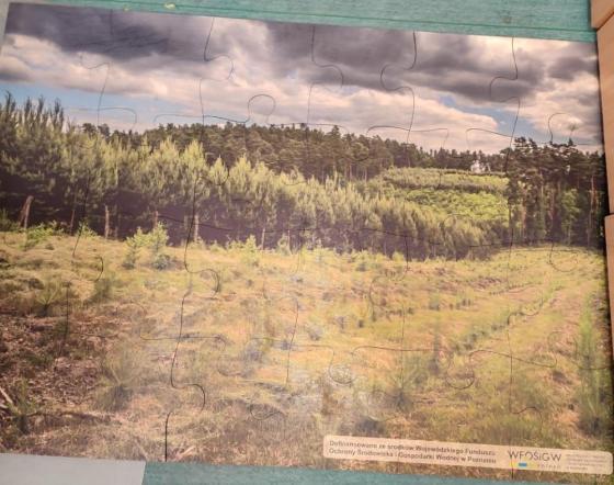 warszawskiego zoo, który jest autorem i tłumaczem wielu publikacji z zakresu ornitologii. W ramach wniosku zakupiono 2 zestawy (2 szt.) pluszaków- ptaki i zwierzęta leśne. Zestaw kształtów liści ze sklejki wraz z kartami w ilości 230 szt. może być wykorzystywany zarówno do nauki rozpoznawania gatunków, jak i rysowania kształtów i kolorowania liści przez najmłodsze dzieci. Dzięki niewielkim kształtom i możliwości przenoszenia zestawów, zakupiony sprzęt i materiały będą mogły być wykorzystywane nie tylko w Centrum Edukacji Ekologicznej przynadleśnictwie, ale również w różnych placówkach oświaty, w których prowadzona jest edukacja leśna, a także podczas festynów i eventów. Materiały uatrakcyjnią nasze centrum i pozwolą edukatorom na szersze i ciekawsze pole wyboru tematyki prowadzonych zajęć. Nadleśnictwo Sieraków zleciło wykonanie puzzli ze sklejki pn. od nasiona do deski” (10szt.) Puzzle są formatu 130x90 cm z nadrukami przedstawiającymi proces tworzenia produktów z drewna ,,od nasiona do deski”, mają na celu zapoznanie się z jedną z funkcji lasu czyli funkcją gospodarczą lasu. Wydruki infografik na sklejce 100x75 cm, mają na celu ułatwić postrzeganie poszczególnych leśnych problemów oraz pogłębienie wiedzy z zakresu tematyki leśnej (10szt.) Twister recyklingowy ma na celu uświadomić osoby biorące udział w grze jak ważne jest świadome używanie przedmiotów w duchu „Zero Waste” oraz recykling (1 szt.).